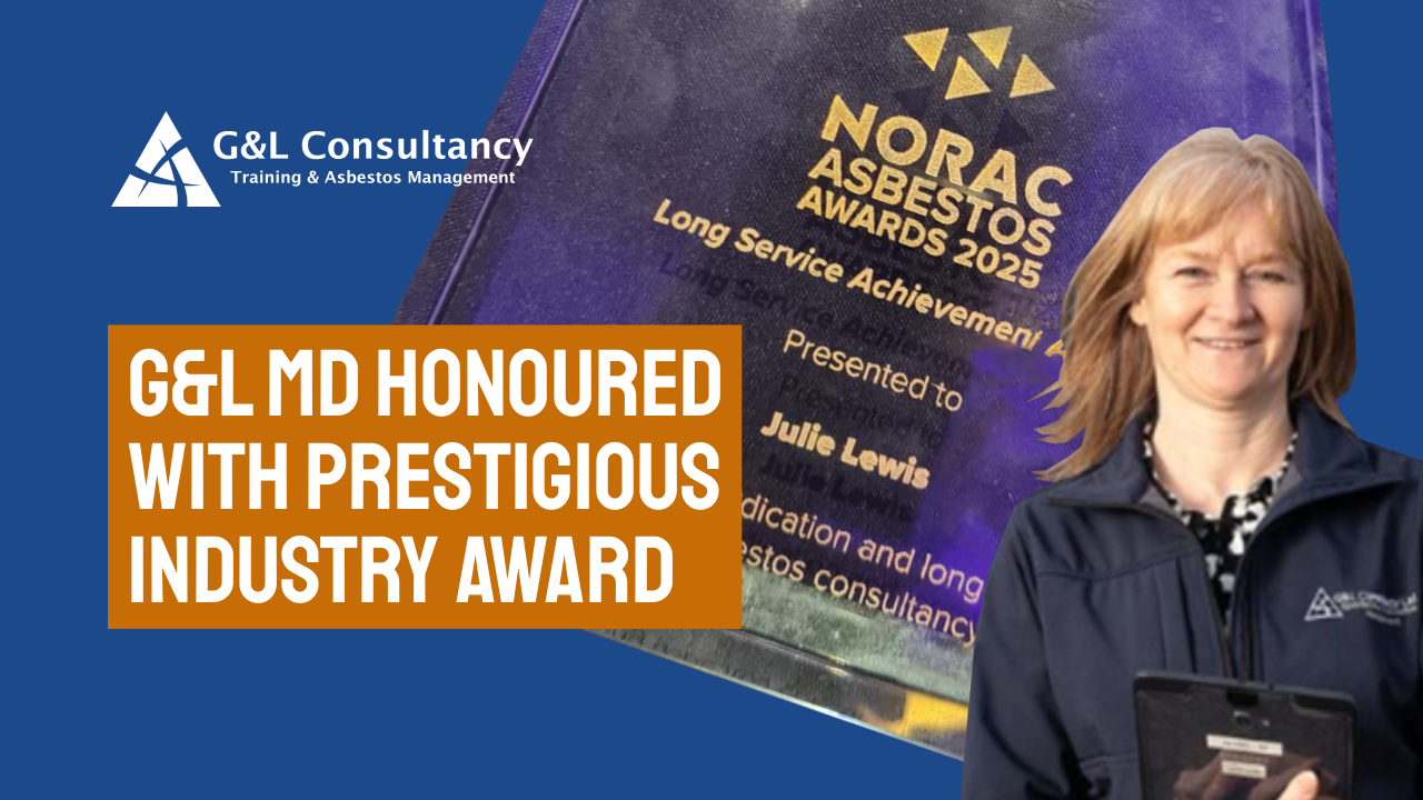 We are delighted to share that Julie Lewis, Managing Director of G&L Consultancy, has been awarded the Long Service Achievement Award at the Annual NORAC (National Organisation of Asbestos Consultants) Conference in Manchester.