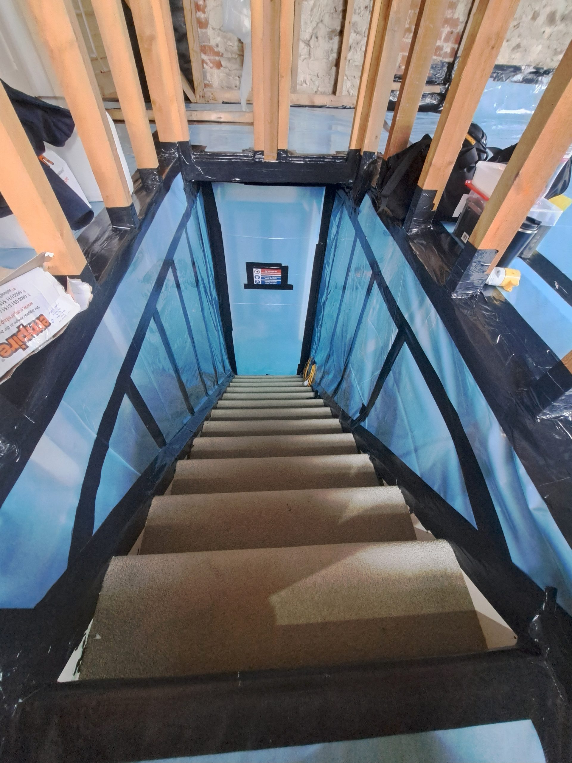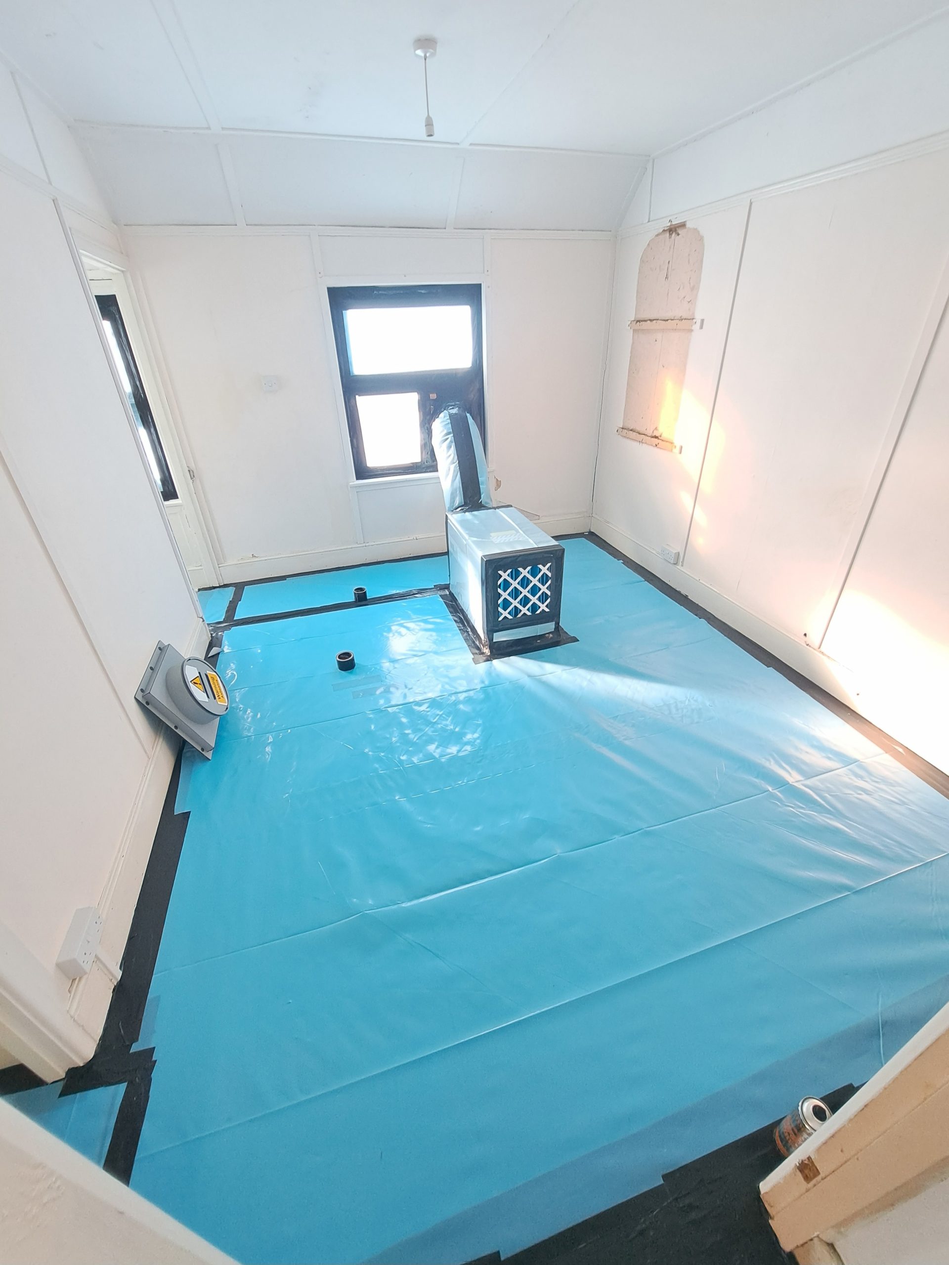 Before commencing the removal process, all furnishings were removed and fixtures isolated. Once the property was empty, two skilled operatives from G&L Consultancy began the meticulous task of sheeting and constructing an enclosure. This enclosure was essential to prevent contamination of surrounding areas if any asbestos fibres were released during the careful removal process.